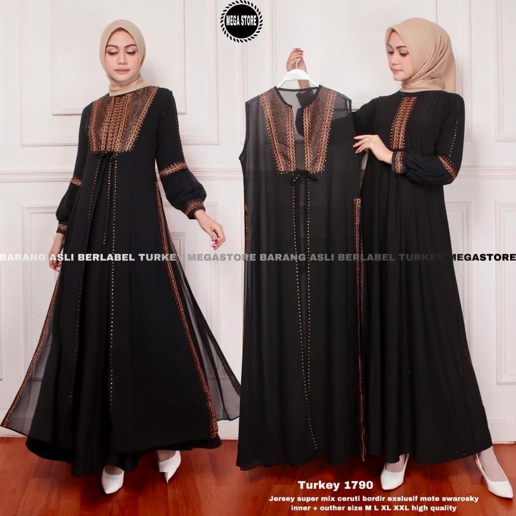 Abaya turkey hitam dubai gamis arab bordir baju wanita muslim syar'i.